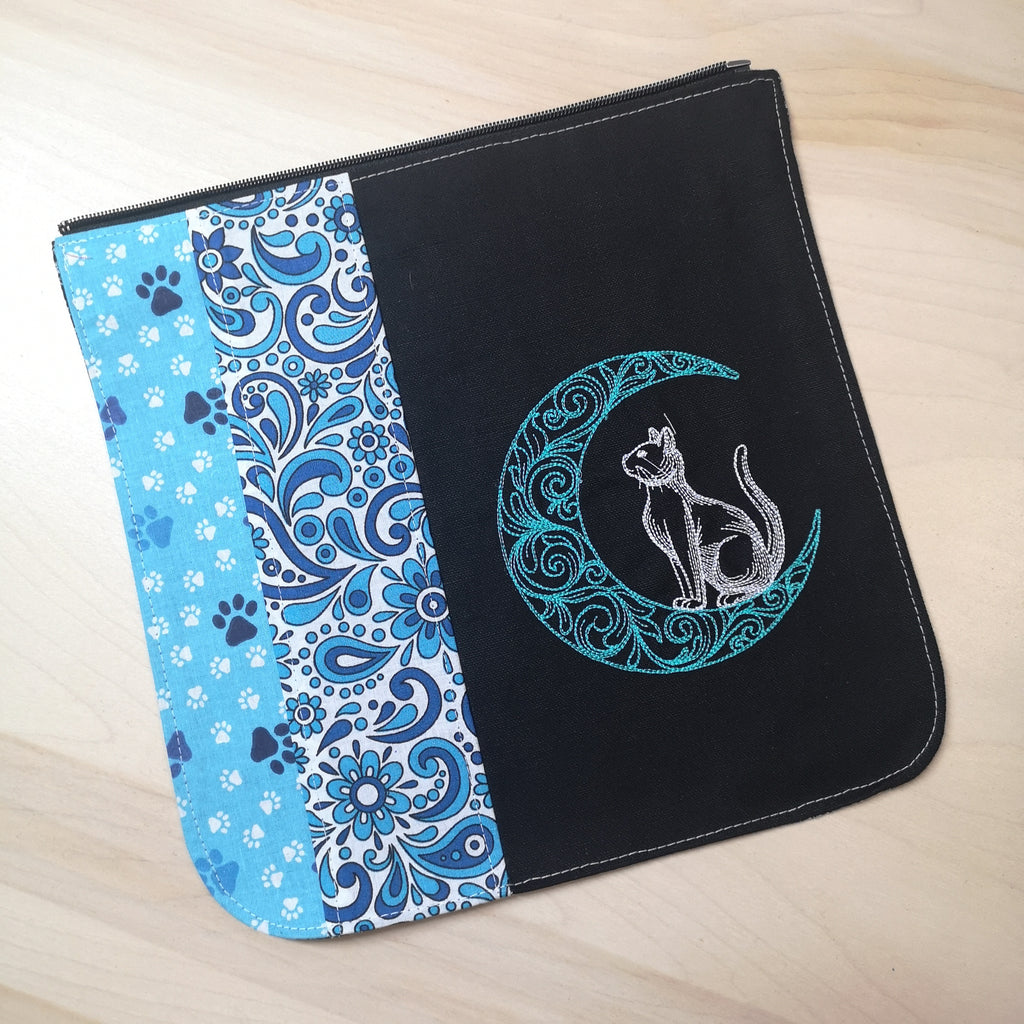 Rabat avec broderie, Fils 100% polyester. Brodé sur du denim/canevas 100% coton. Côtés de tissus à motifs 100% coton style courtepointe.